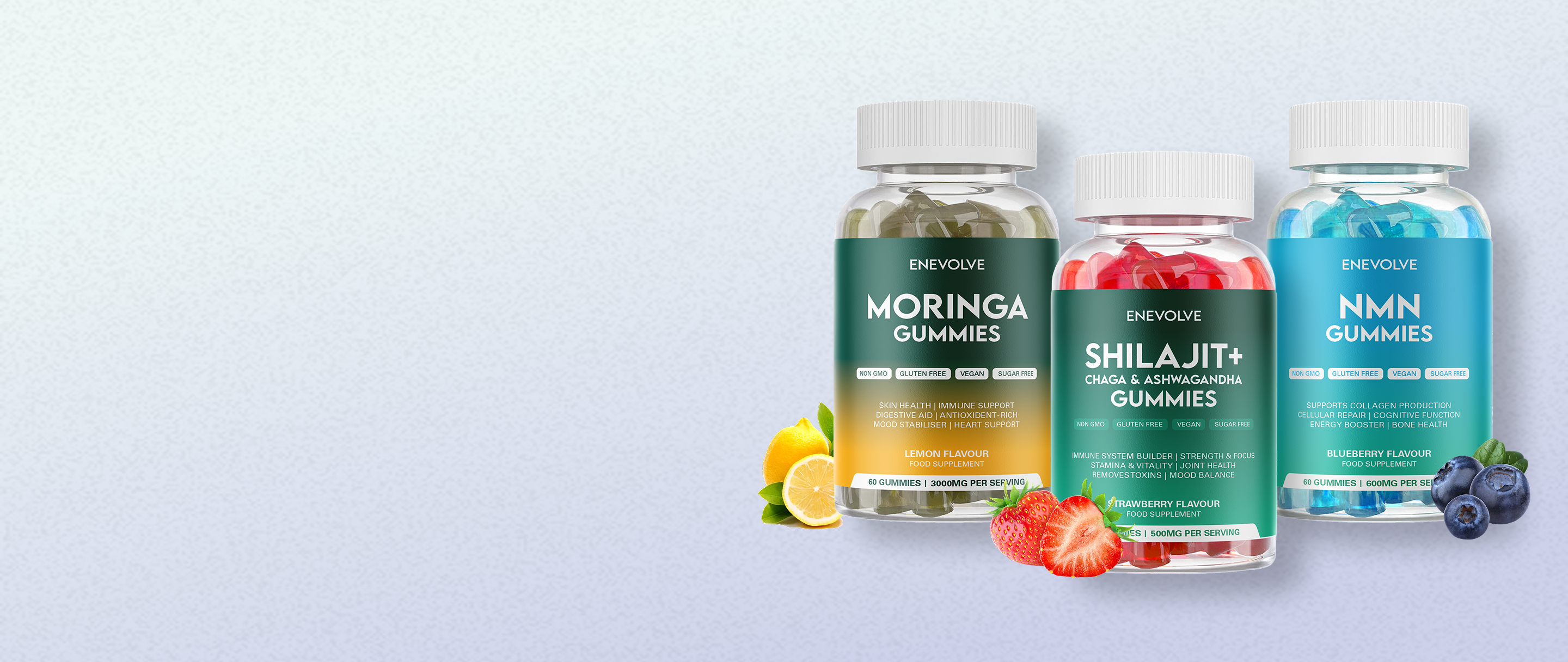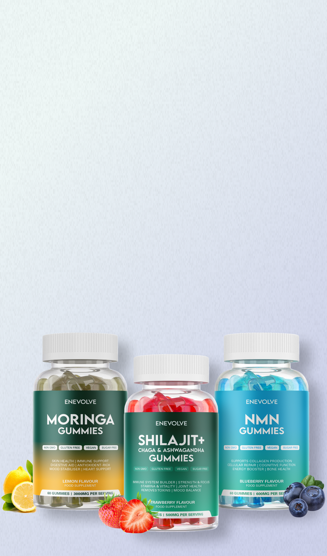 At Enevolve, we stand for pure, science-backed wellness. Our goal is simple—craft natural supplements that fuel your energy, boost vitality, and support long-term health. With a perfect blend of nature and science, we help you live your best life, every day.